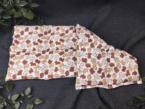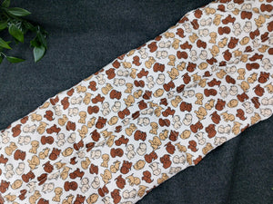 Unser Körnerkissen ist verziert mit kleinen, skizzierten Labradorbabys in 3 verschiedenen brauntönen auf weißem Baumwollstoff.