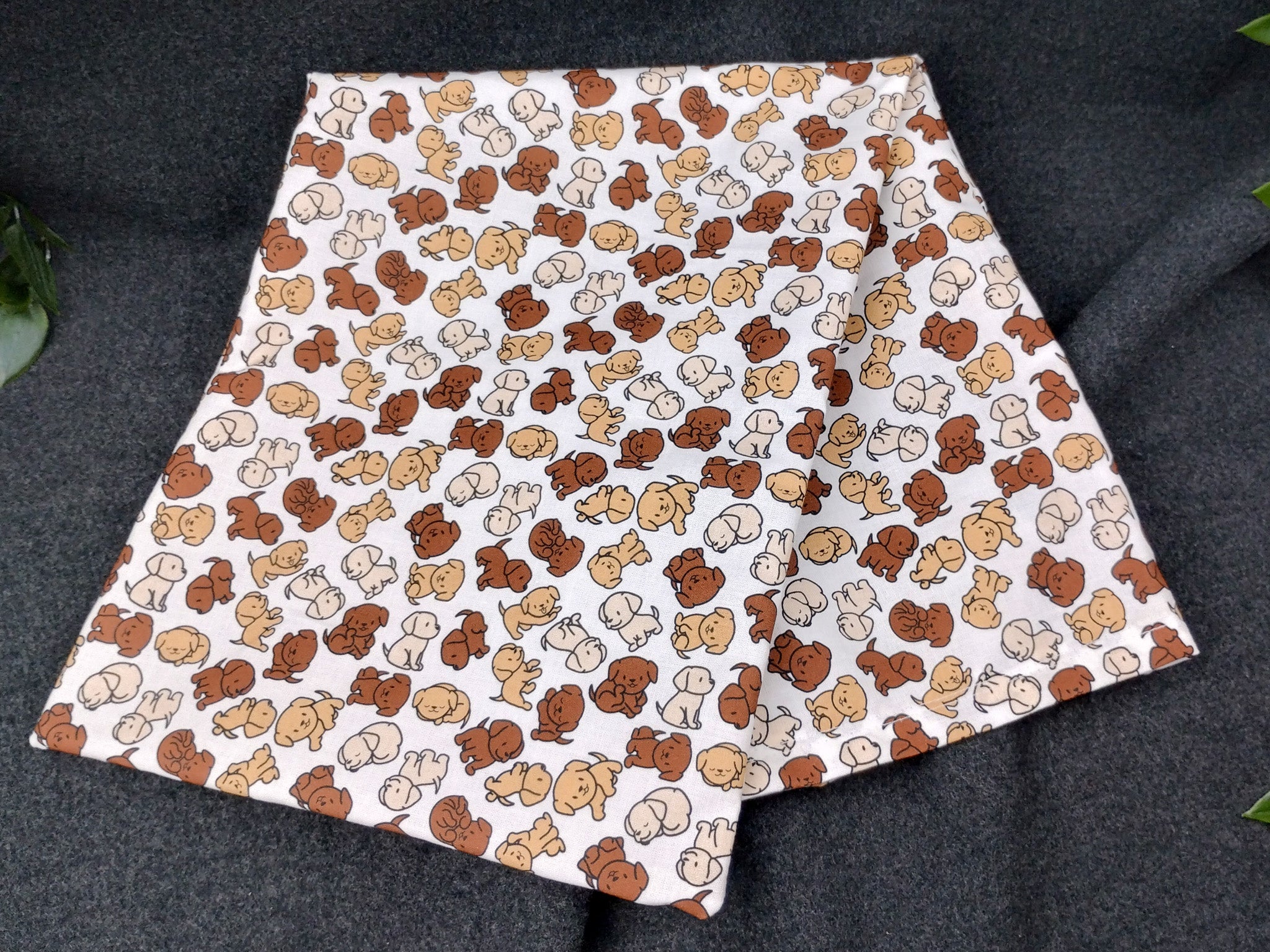 Das Motiv zeigt viele kleine, skizzierte Labradorbabys in 3 verschiedenen brauntönen auf weißem Baumwollstoff.